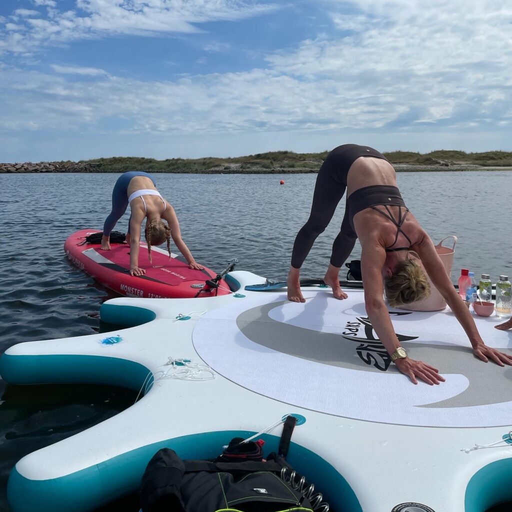 Når vejret tillader det, finder vi søstjernen frem og nyder livet på vandet med afslappende yoga.